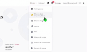Agora, vá para a barra superior direitaah, clique Carteira > Carteira Spot.