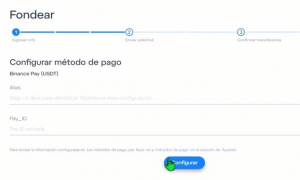 Entre agora para Configurar método pagar. Aí você deve Insira um alias e o ID de pagamento da própria Binance. Depois elez clique em Configurar.